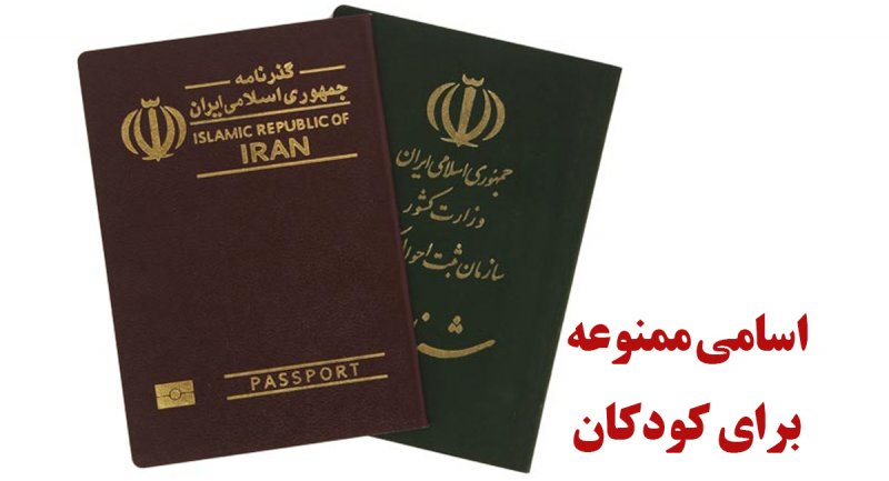 انتخاب نامهایی که موجب هتک حیثیت مقدسات اسلامی میشود و همچنین عناوین و القاب و نامهای زننده و مستهجن یا نامتناسب با جنس، ممنوع است. تشخیص نامهای ممنوع با شورای عالی ثبت احوال است و این شورا نمونههای آن را تعیین و به این سازمان اعلام میکند.