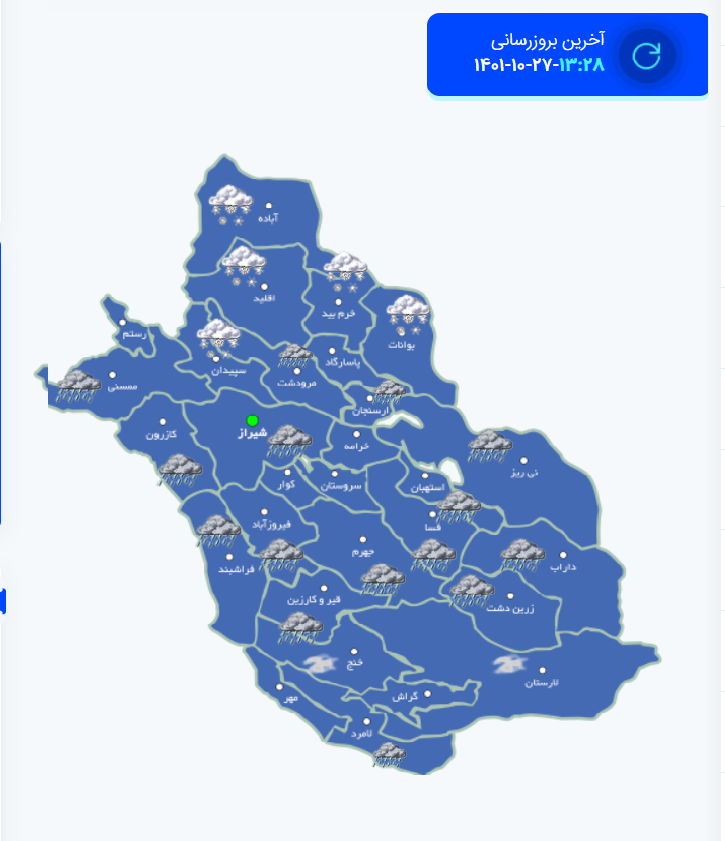 نقشه هواشناسی بعد از ظهر 27 دی فارس