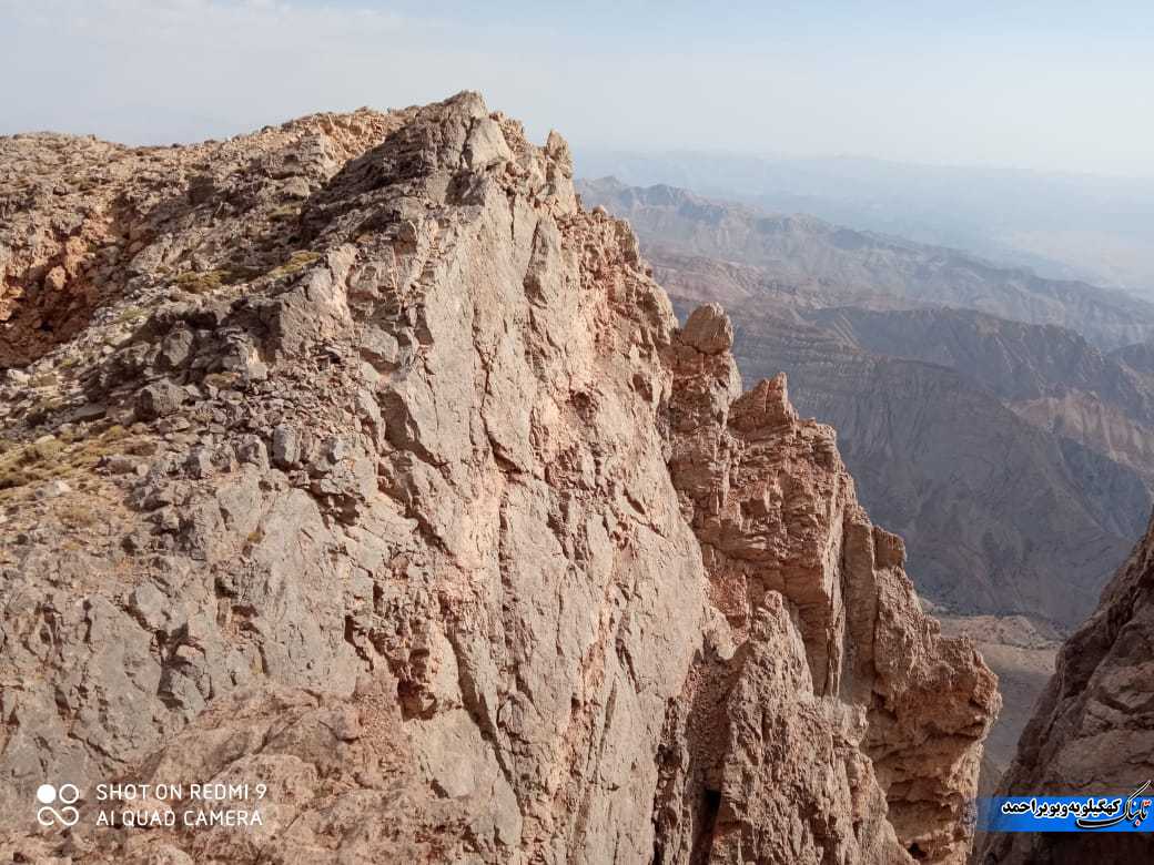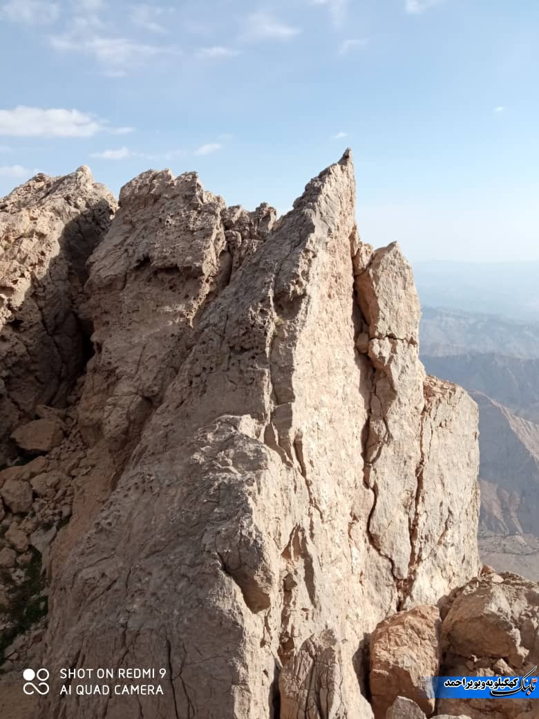 بعد از استراحت باز کوله بار همت را بستیم و از سینه کش و چالش با صخره و سنگ بالارفتیم. ستیغ صخره های یال شرقی پازن پیر بعضا قمه مانند بود بنابراین با ریسک و خطرپذیری و البته با احتیاط از آن بالا می رفتیم.